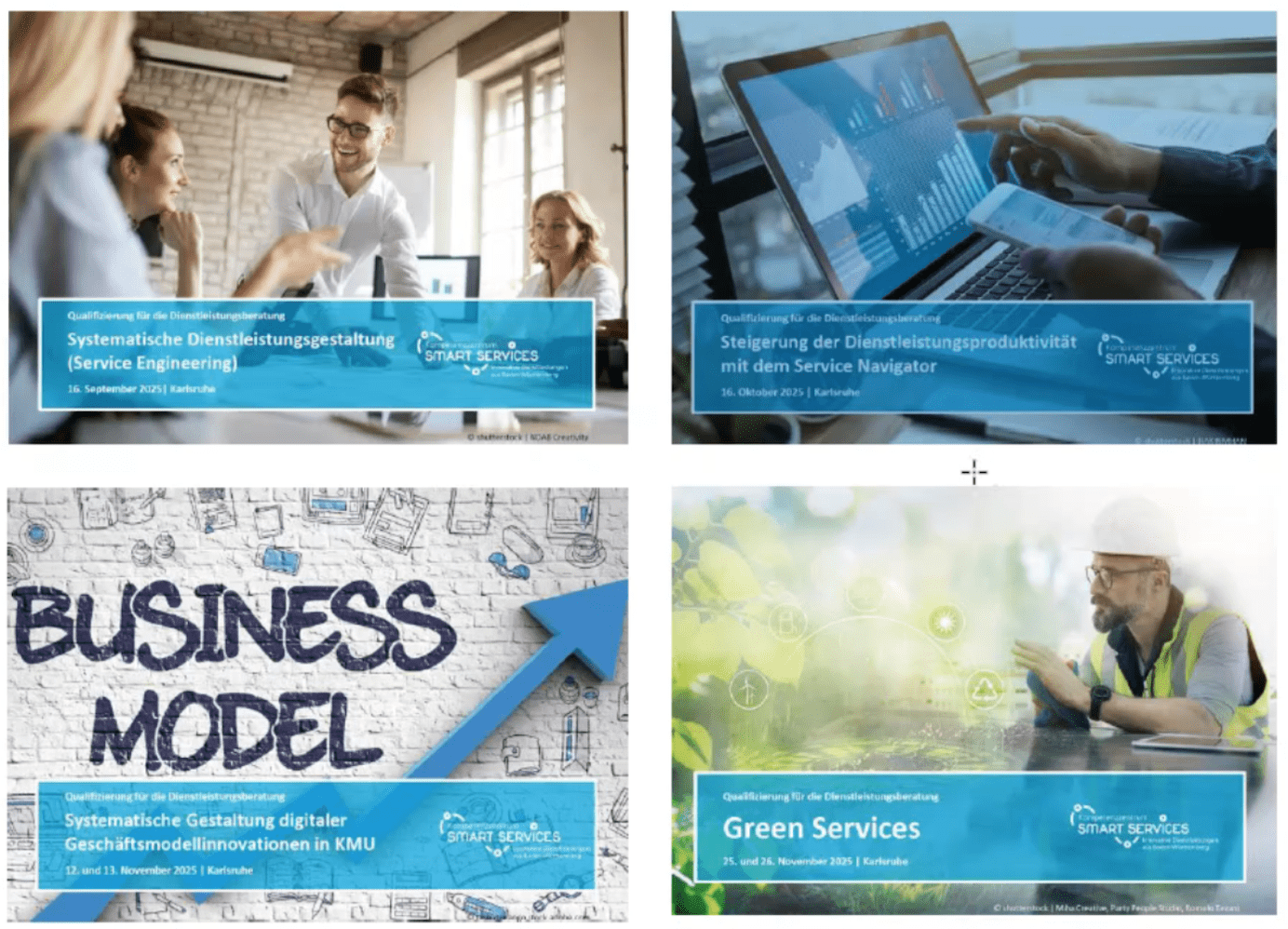 Unsere erfolgreichen, vierteiligen Dienstleistungsberaterschulungen gehen in die nächste Runde. Die Seminare für Beraterinnen und Berater finden dieses Mal in Karlsruhe statt. Start ist am 16. September 2025 mit dem Thema „Systemische Dienstleistungsberatung” und den Fragen: Wie lassen sich neue Dienstleistungen entwickeln? Wie kann dies im Arbeitsalltag kleiner und mittlerer Betriebe erfolgen? Die weiteren Module sind: „Steigerung der Dienstleistungsproduktivität” (16. Oktober 2025), „Systemische Gestaltung digitaler Geschäftsmodelle” (12. und 13. November 2025) und „Green Services” (25. und 26.November 2025).