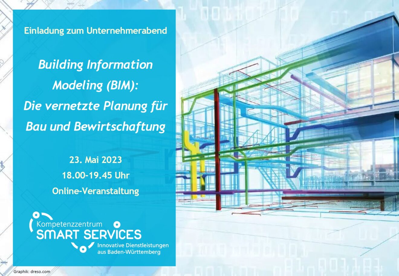 Am 23. Mai findet der nächste digitale Unternehmerabend zum Thema „Building Information Modeling (BIM): Die vernetzte Planung für Bau und Bewirtschaftung“ statt. Die Veranstaltung bietet Unternehmen eine Plattform für Networking und Wissensaustausch. Auf dem Programm stehen interessante Vorträge von vier Expertinnen und Experten, Erfahrungsberichte sowie eine offene Diskussionsrunde.