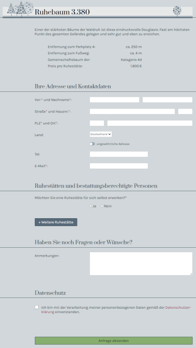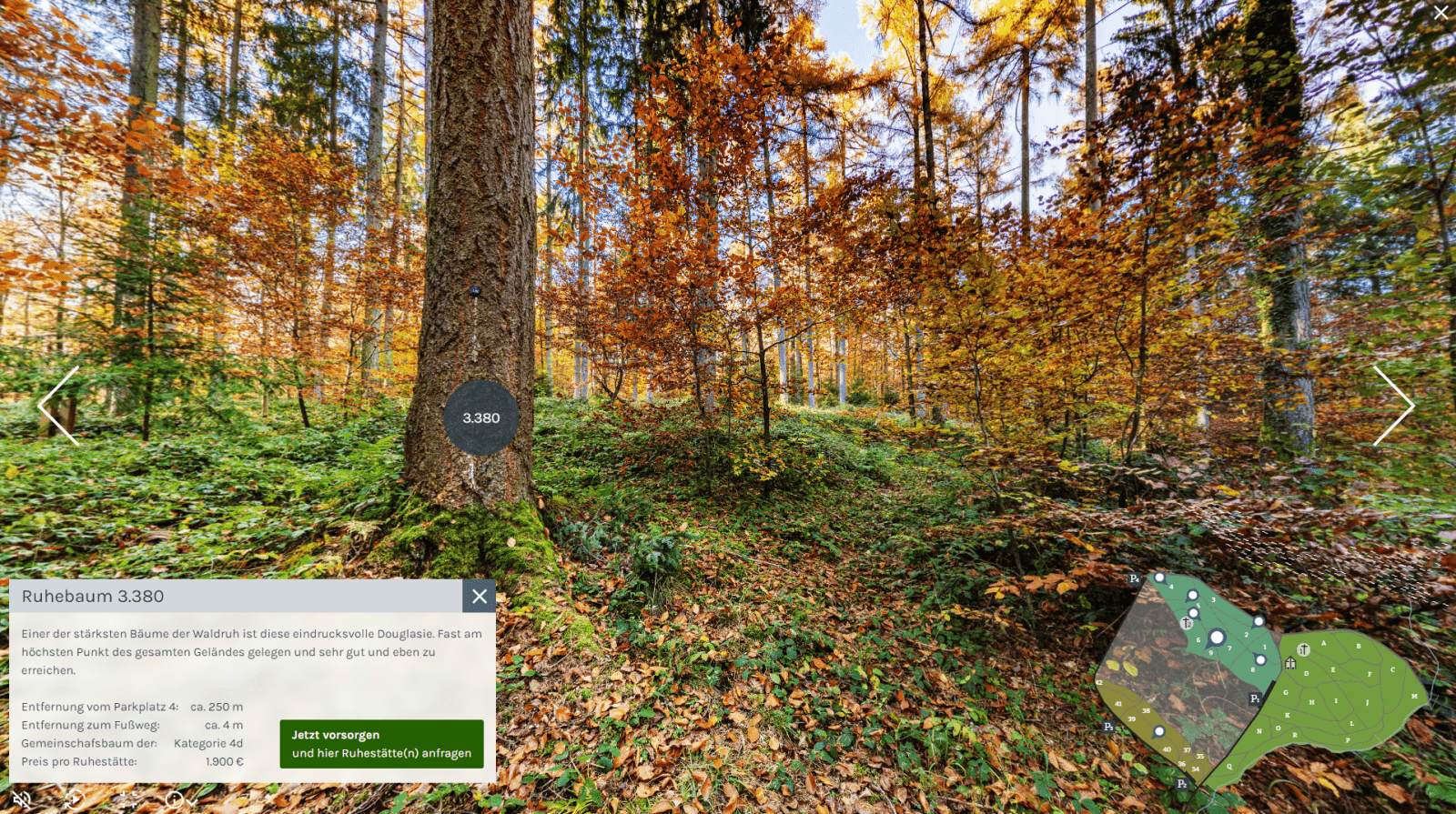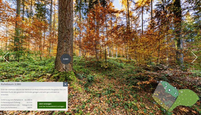 Die Waldruh St. Katharinen ist ein Waldfriedhof, der auf umweltfreundliche Bestattungen spezialisiert ist und das Ziel verfolgt, den Menschen eine natürliche und ruhige letzte Ruhestätte zu bieten. Seit 2018 setzt die Waldruh St. Katharinen verstärkt auf digitale Innovationen, um den Auswahlprozess für Grabstellen zu erleichtern und Kunden auch aus der Ferne die Möglichkeit zu bieten, sich umfassend zu informieren. Durch die Einführung eines virtuellen Rundgangs und einer digitalen Baumauswahl hat die Waldruh St. Katharinen ihre Dienstleistungen erweitert und modernisiert. Diese digitalen Dienstleistungen sollen einerseits den Verwaltungsaufwand reduzieren und andererseits den Kunden ein neues Erlebnis und einen unkomplizierten Auswahlprozess ermöglichen.