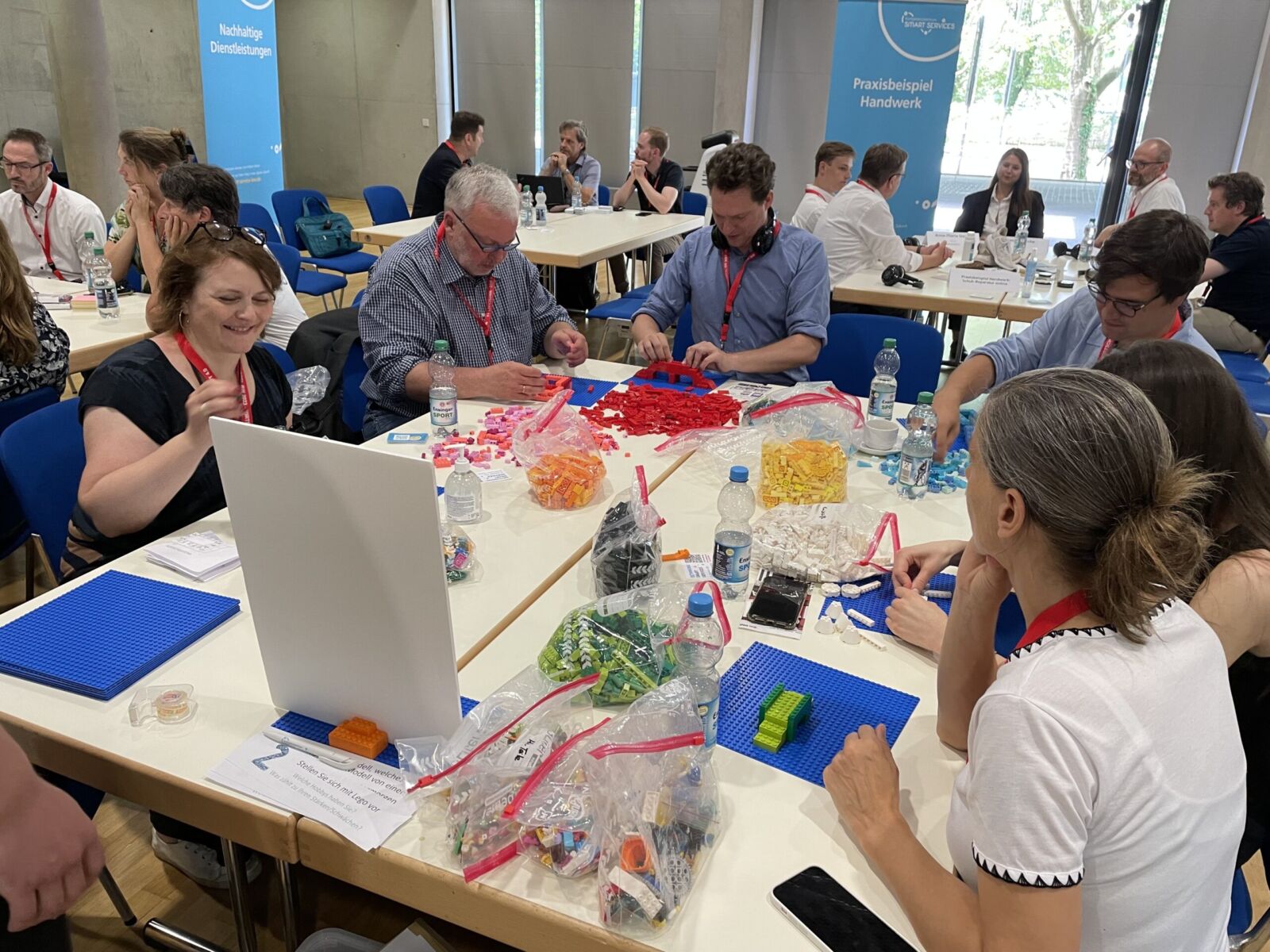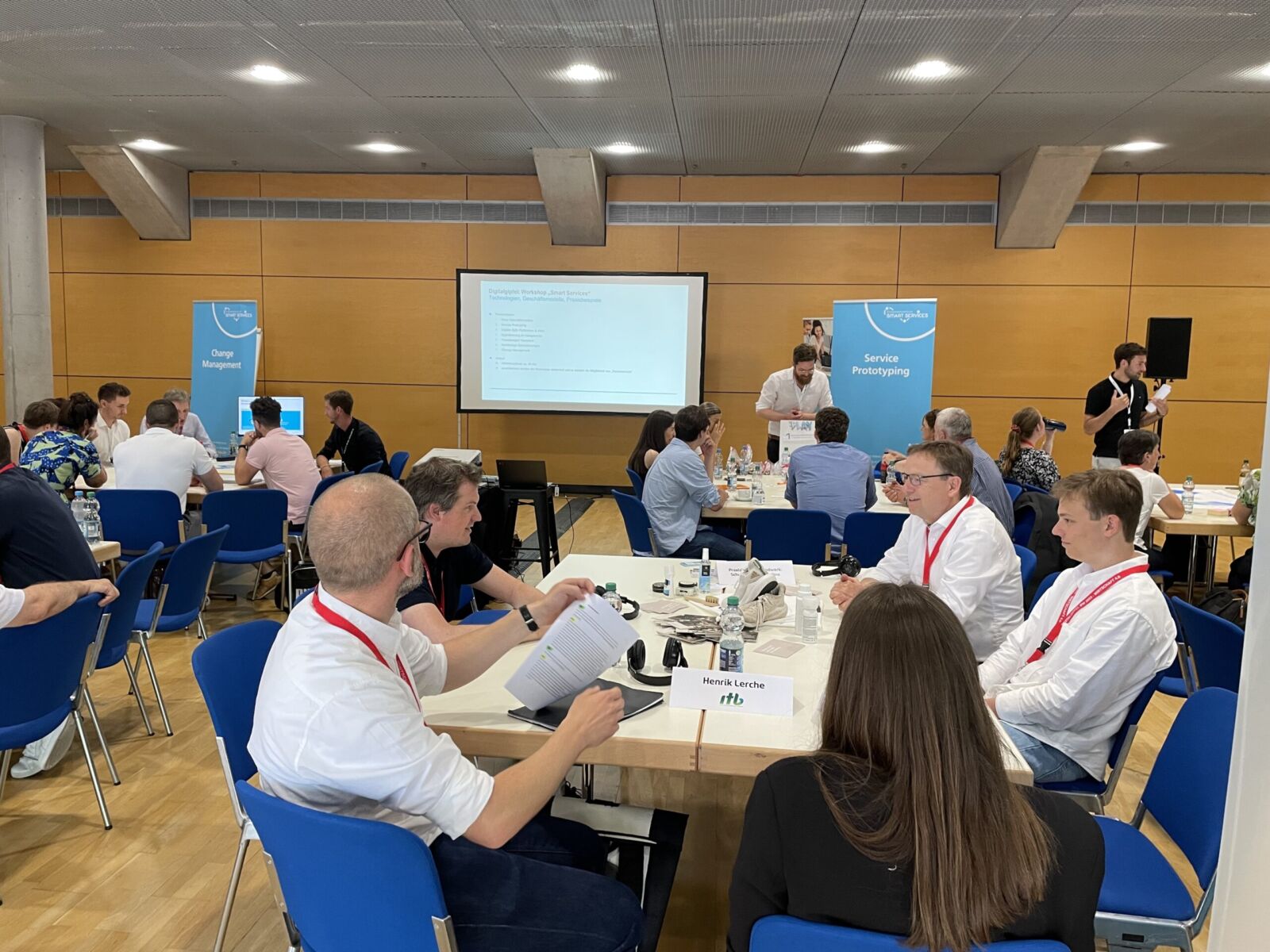 Das Kompetenzzentrum Smart Services war als wichtige landesweite Initiative für Digitalisierung und Innovation im Dienstleistungsbereich ebenfalls mit an Bord. Gemeinsam mit dem Branchenverband DEHOGA Baden-Württemberg wurde im Rahmen des Digitalgipfels ein interaktiver Workshop zu Smart Services ausgerichtet. Hierbei konnten die Teilnehmenden – überwiegend Unternehmensvertreterinnen und -vertreter – an sechs verschiedenen „Themeninseln“ relevante technische und organisatorische Aspekte rund um die Digitalisierung von Dienstleistungen diskutieren.