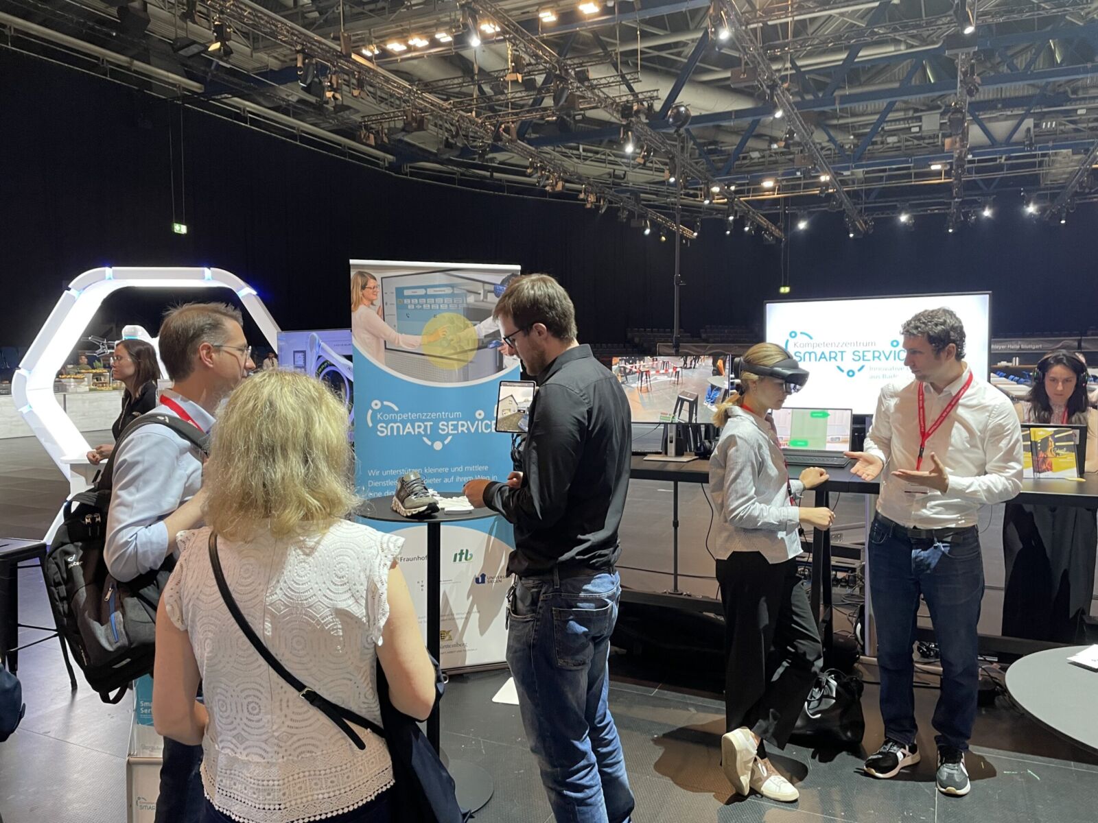 Außerdem hatten die Besucherinnen und Besucher des Digitalgipfels die Möglichkeit, sich auf einem Ausstellerstand über das Kompetenzzentrum Smart Services zu informieren und neue digitale Dienstleistungstechnologien persönlich auszuprobieren. Das Angebot reichte von neuen Augmented-Reality-Apps für den Handel über Visualisierungstools wie die HoloLens bis hin zu Servicerobotern für die Gastronomie. Das Feedback war überaus positiv und mit einer Reihe an Unternehmen wurden bereits vor Ort konkrete gemeinsame Aktivitäten wie das Durchführen von Impuls-Projekten vereinbart.